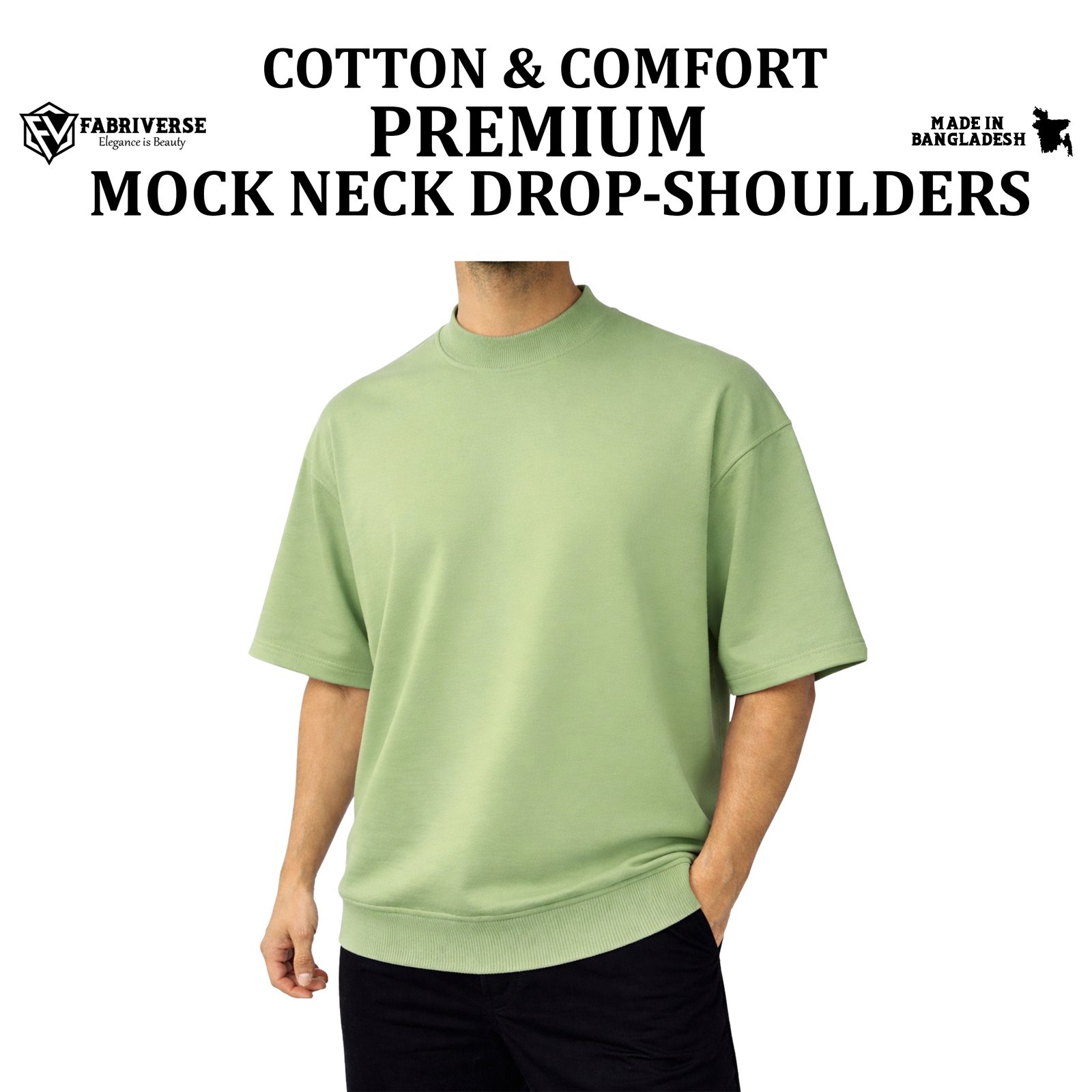 Mock Neck Drop-Shoulder T-Shirt – Premium Baby Terry (220 GSM)