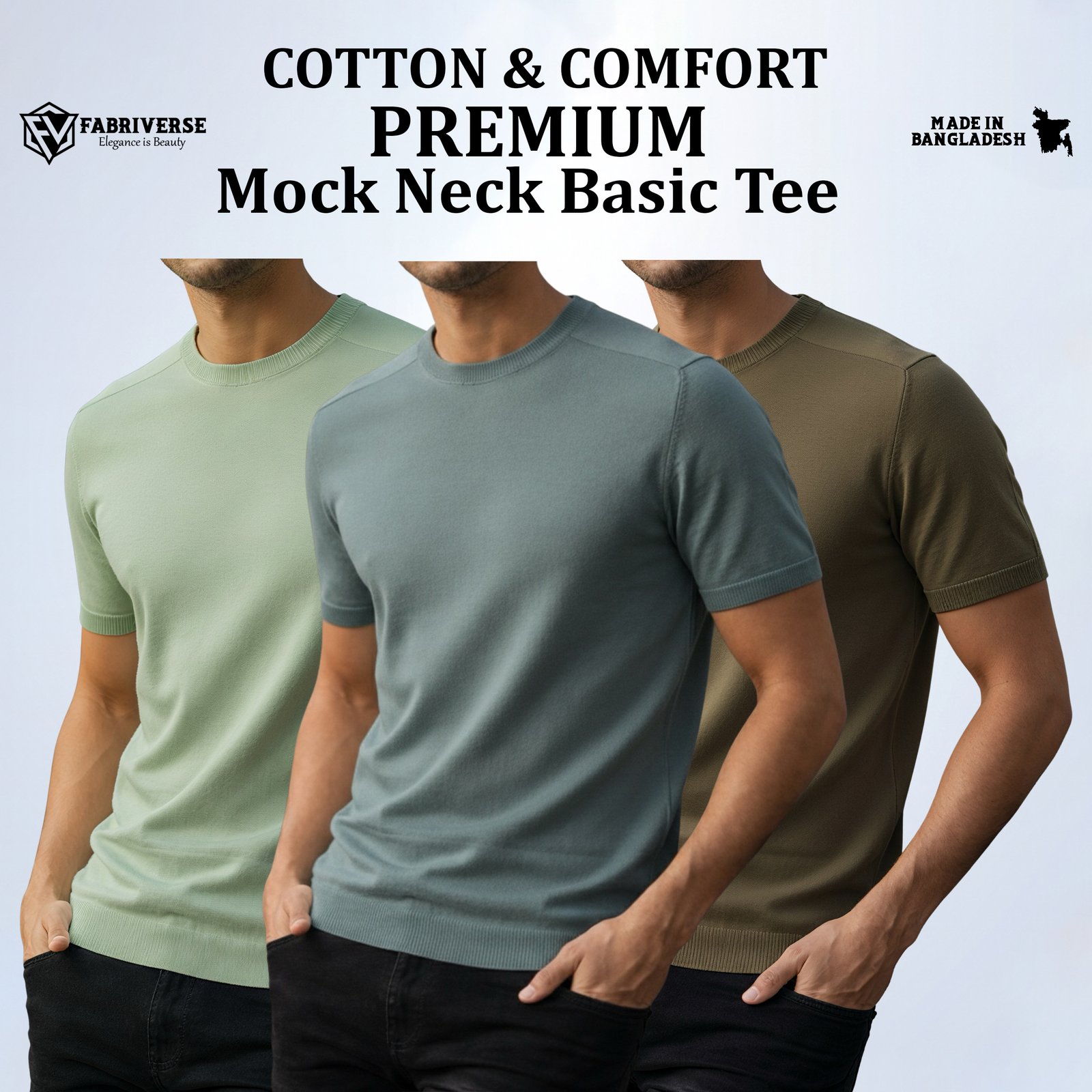 Men’s Mock Neck Basic T-Shirt made from breathable soft cotton (GSM 200+). Features a modern slim fit and stylish mock neck design—perfect for daily wear, college, office, and casual occasions.