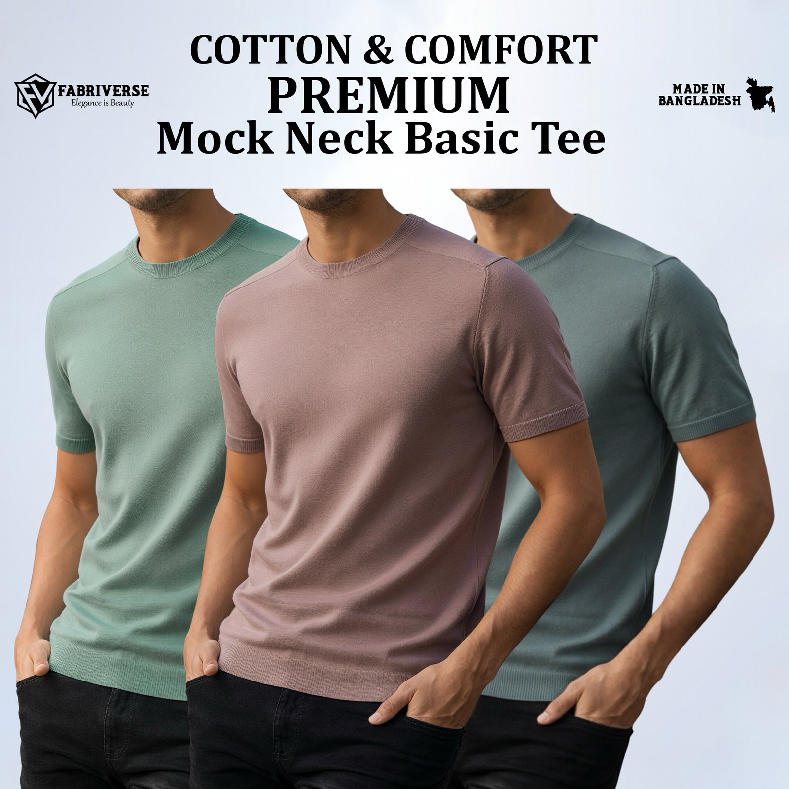 Men’s Mock Neck Basic T-Shirt made from breathable soft cotton (GSM 200+). Features a modern slim fit and stylish mock neck design—perfect for daily wear, college, office, and casual occasions.